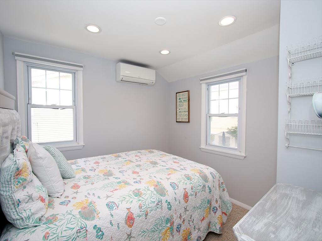 Second floor of duplex, 5 houses to the beach. A few short blocks to Bay Village and Fantasy Island. Newly renovated and freshly painted, with 50″ TV in living room and 32″ TV in bedroom. Outside shower shared with 1st floor. Outdoor furniture includes a picnic table and lounge chairs. Each floor has it s own grill. Updated fire pit, new flooring throughout and a new kitchen with dishwasher.